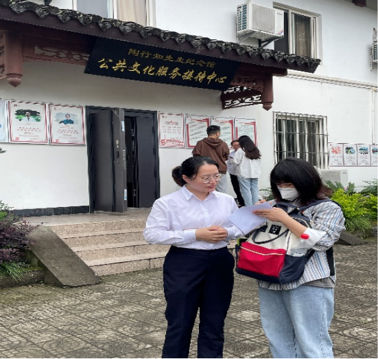参观结束后,同志们进行了“历史爱国人物纪念馆的重要价值研究——以陶行知先生纪念馆为例”实地调查,通过访问纪念馆工作人员、参观人员,了解陶行知先生纪念馆所发挥的社会教育作用,发放问卷收集陶行知先生纪念馆展示效果和社会价值。