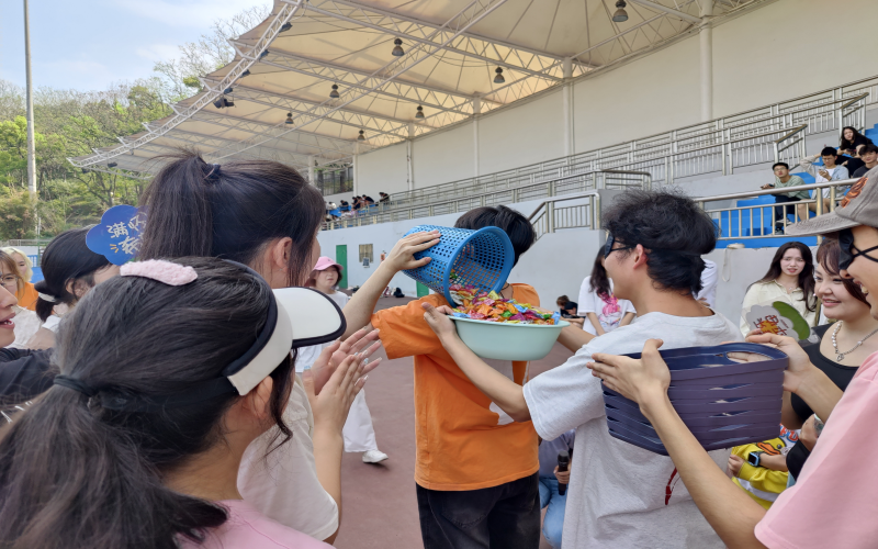运动会开始,“乒乓球运输”的项目迅速活跃了气氛,运动员几人合作,通过乒乓球拍运送乒乓球进行接力。运动会持续进行,“田间一条龙”“集腋成裘”“两人三足”“五分钟跳大绳”的比赛促进同学们热情不断高涨。伴随一声哨响,最终的拔河比赛开始了,此起彼伏的加油声迅速推动着气氛到达高潮。本次活动展现了同学们乐观向上的品质和集体合作的精神,也不断增进同学情谊和民族凝聚力。