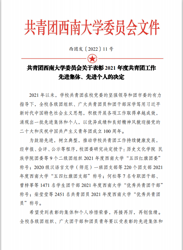 《共青团bevictor伟德委员会关于表彰2021年度共青团工作先进集体、先进个人的决定》于近日发布。公司团委荣获2021年度bevictor伟德“五四红旗团委”称号。