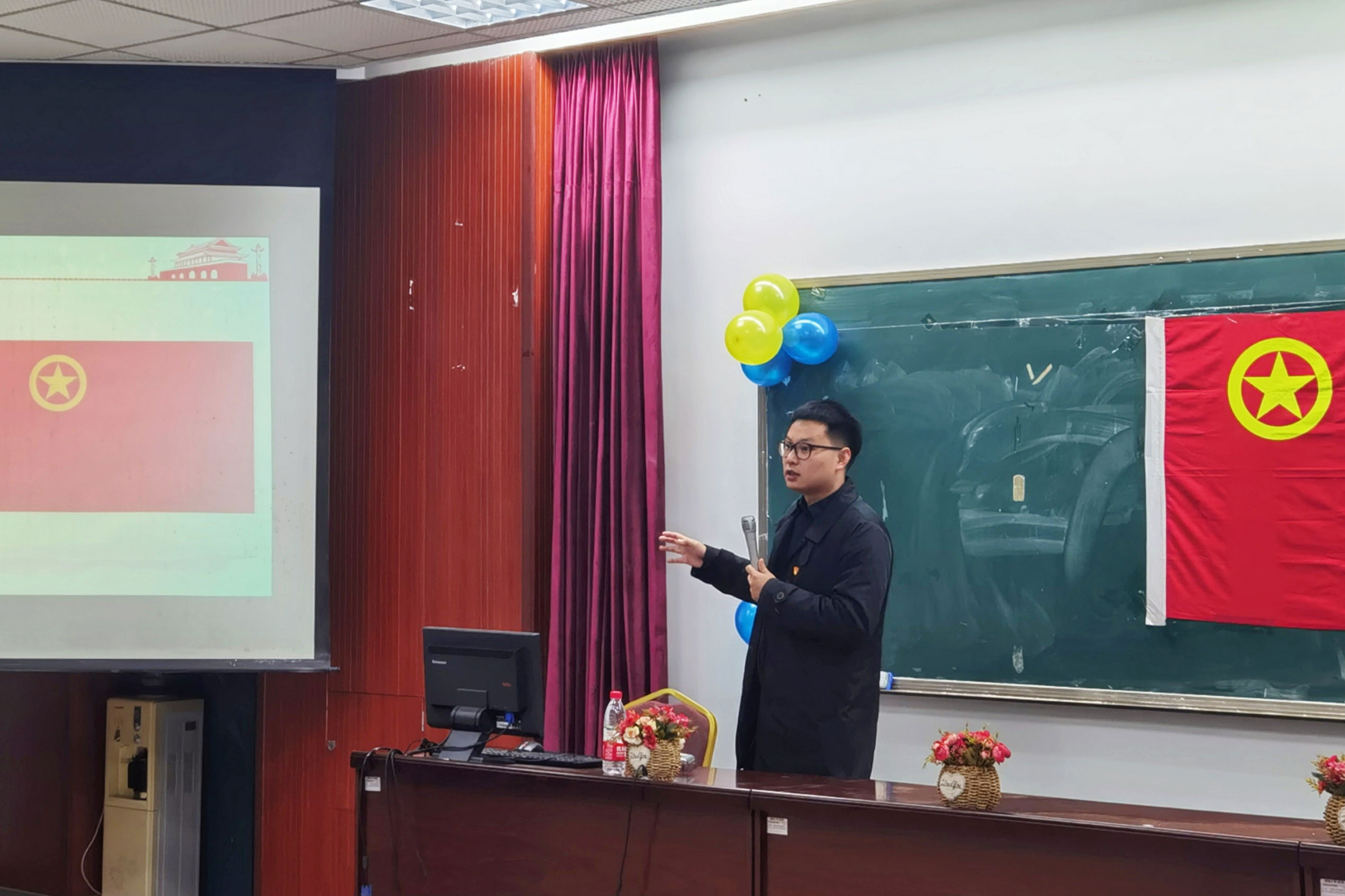 随后,李立为全体学员讲授团校第一课“做一名合格的共青团员”。李老师首先共青团的基础知识、共青团的组织原则、共青团的历史、共青团的重大历史会议四个方面内容进行了详细讲解,重点帮助同学厘清中国共产党和中国共产主义青年团的关系。接着,他带领大家回顾了中国近代的屈辱历史以及中国探寻正确道路的曲折历程,强调了广大青年团员要对马克思主义、对中国共产党、对中国道路充满自信。紧接着,李老师还就团学干部的个人修养和社交礼仪与同学们进行了交流,让同学们对日常社交中的各项礼仪常识有了基本了解,从而深刻认识了知礼懂礼的重要性。