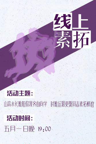 5月初,为加强伟德体育民族公司团学组织成员之间的交流,团学组织于5月1日19:00举行线上素质拓展活动。在线上以各种形式联系了团学组织成员的情谊、丰富了课余生活。