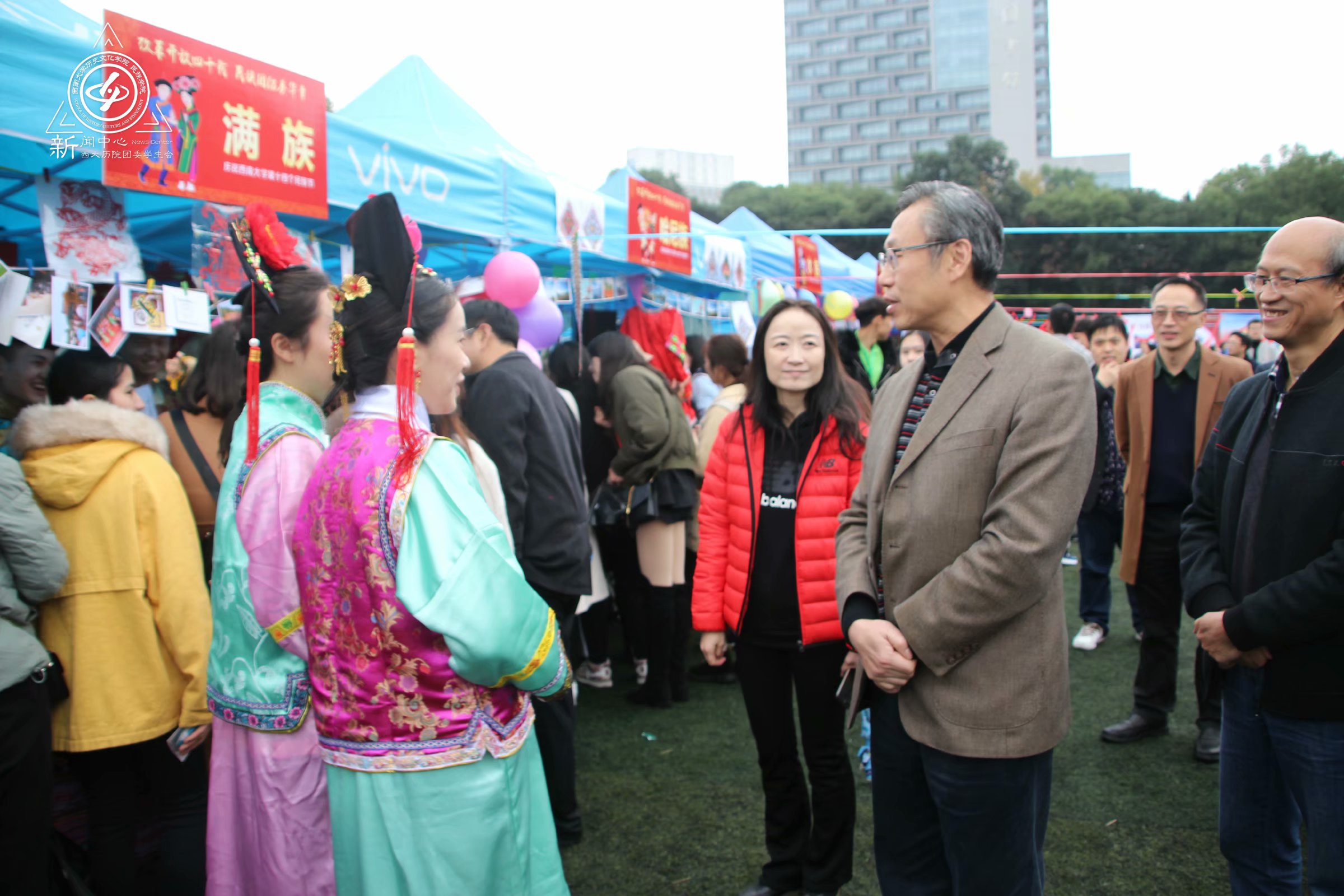 11月16日下午,民族节文化游园会于第三运动场举行。由校民族艺术团带来的开场节目《帕米尔之恋》点燃了到场师生们的热情。在游园会现场,浓厚的民族氛围层层环绕,醉人的民族风情源源不绝,数十个民族伞棚整齐而立,应约而至的广大师生络绎不绝。公司党委副书记安春元和校民族团结工作领导小组的成员们也参与到了活动中去,仔细询问各个民族特色习俗,感悟西大少数民族学子风采。