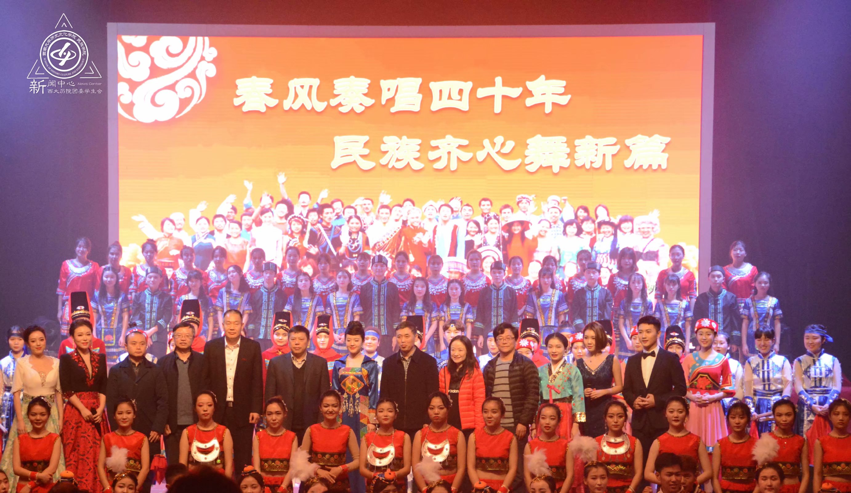 当晚,民族风情歌舞晚会在光大礼堂举行。晚会以“春风奏唱四十年·民族团结舞新篇”为主题,bevictor伟德董事长张卫国、党委副书记潘洵等领导出席并观看演出。
