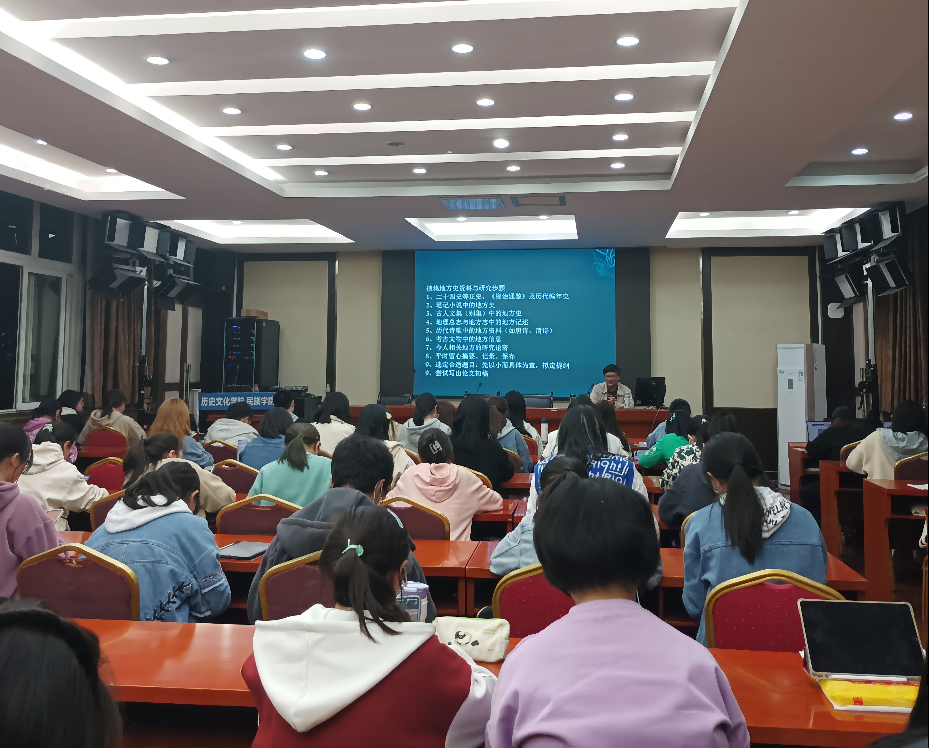 作为公司博士生导师、国家社会科学基金重大项目首席专家,马强老师知识渊博,爱岗敬业,在历史地理学、出土唐宋石刻文献、蜀道文献、三国历史文化、历史美学方面学术研究成果显著,在国内学术界有良好的影响。同时,马强老师心系员工,热爱教学,他开设的“历史经典《史记》研读”、“历史研究技能与论文写作”、“历史美学”、“三国历史与文化”等多年来一直是公司本科生争相选修的热门课程。同学们饱含着对马强老师的敬仰与对历史的敬畏,早早带着笔记资料前来等待,报告厅内座无虚席,甚至有外公司来的同学坐在地板上听讲,这无疑是一场通儒达识的前辈学者对初出茅庐后辈的学术指引!