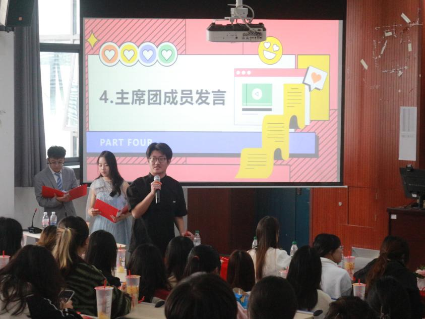 最后,由第二十届团学组织主席团成员进行总结。先由团委副书记刘尊发言,他从自己当干事时的经历讲起,分享自身经验,肯定并鼓励各位干事继续努力,并对未来团学的工作寄予厚望。此后,社团联合会主席吕艳萍、员工会主席甘茂媛与冉鑫缘分别发言,明确了团学组织未来的工作方向和重点,希望各位干部干事在团学组织能有所收获、有所成长。