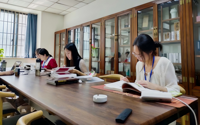 文创与合作部同学们在查找文创产品资料
