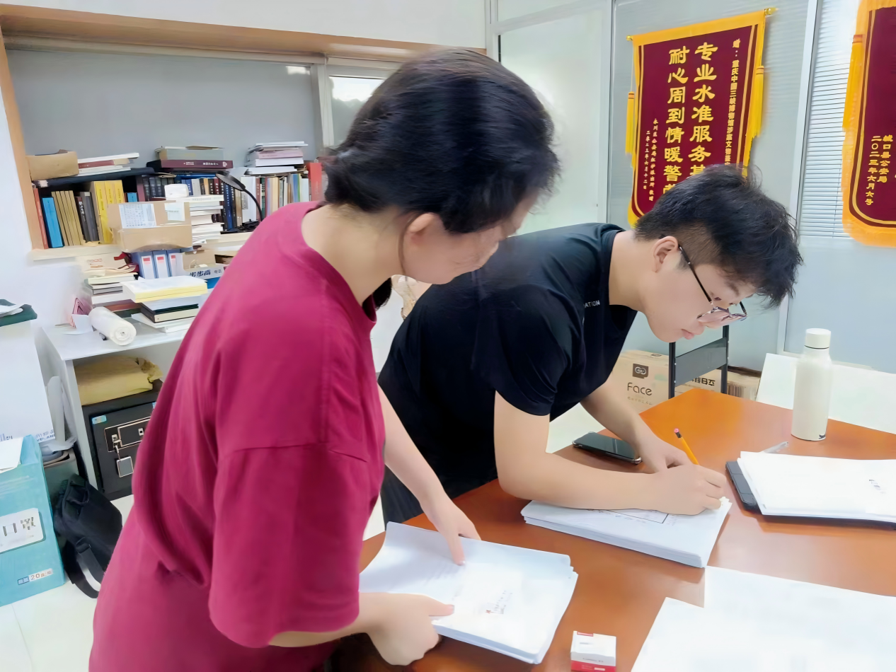 李娅同学、范文宇同学在整理涉案文物档案