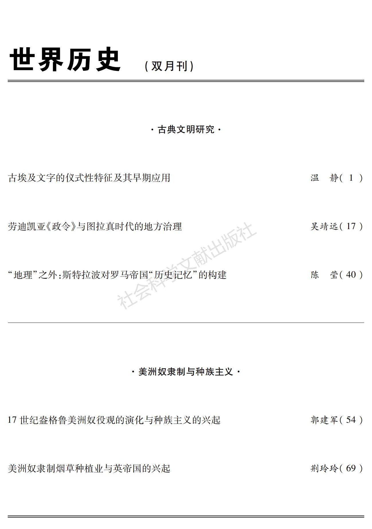 我国世界史学科领域权威期刊《世界历史》2024年第3期发表了公司陈莹副教授的学术论文《“地理”之外:斯特拉波对罗马帝国“历史记忆”的构建》。