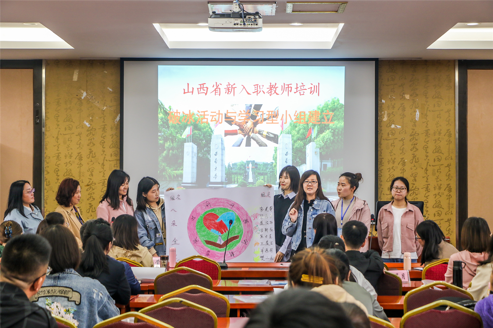 张新超老师与学员们在重庆市人民大礼堂