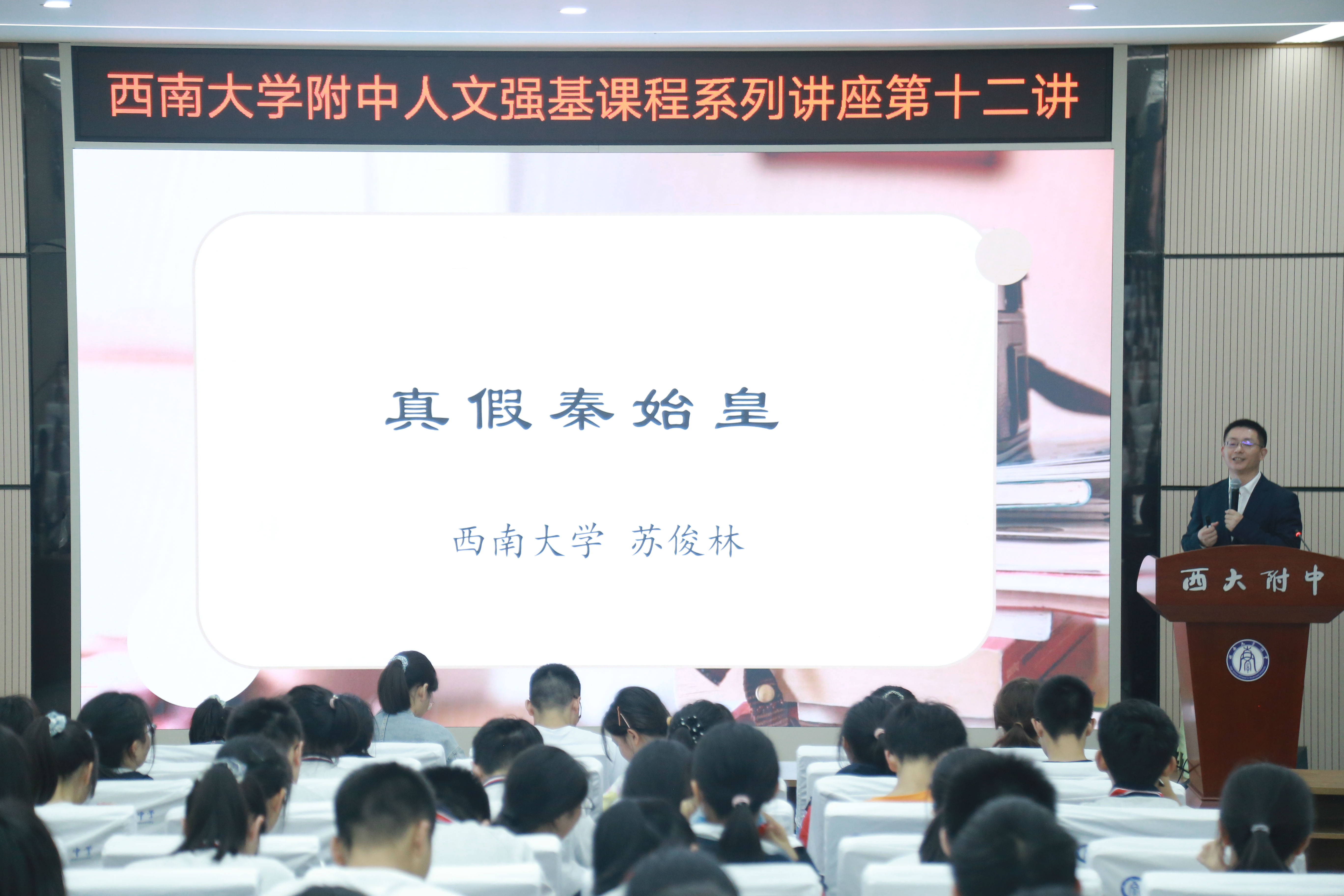 5月28日晚上7点,伟德体育副教授苏俊林为附中学子带来了一场精彩的讲座“真假秦始皇”,苏老师带领大家依据传世文献和简牍共同探讨秦始皇形象的真相。bevictor伟德附中马彬琼老师担任讲座主持。