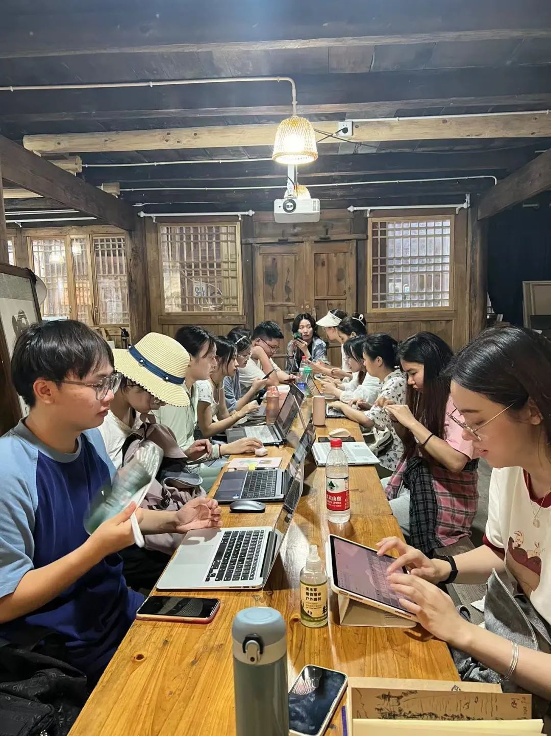 一切准备妥当后,7月5日,2020级民族学班的成员乘坐高铁前往贵州省黔东南苗族侗族自治州榕江县,随后乘坐大巴车辗转山路到达大利侗寨,经过短暂的安顿修整,田野工作随即拉开了序幕。按照三阶段田野计划——即第一阶段田野调查形成整体观;第二阶段拟定主题方向开展专题调查;第三阶段田野报告写作——同学们组成了小组开始在村中进行参与观察与访谈。白天同学们外出调查,夜晚,实习老师和同学们聚在一起,集中讨论这一天搜集到的信息及其从中生发出的学科问题,讨论结束后,同学们还要将这一天的田野速记进行整理,纂写田野笔记,并且为第二天的调查拟定提纲和计划。