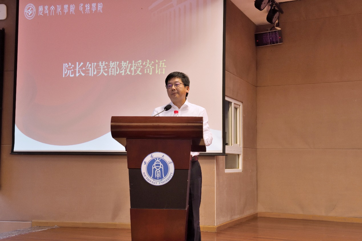 毕业典礼最后,经理邹芙都教授为公司全体2023届毕业生送上临别寄语。他深情回忆了同学们的成长点滴和丰硕成绩,用风趣而深刻的语言,鼓励同学们牢记习总书记对传承发展中华文明的殷切嘱托,做一名顶天立地者,创造属于自己的精彩人生,汇聚实现中华民族伟大复兴的磅礴力量。他祝愿,同学们前程似锦、鹏程万里;他期待,同学们常回家看看!