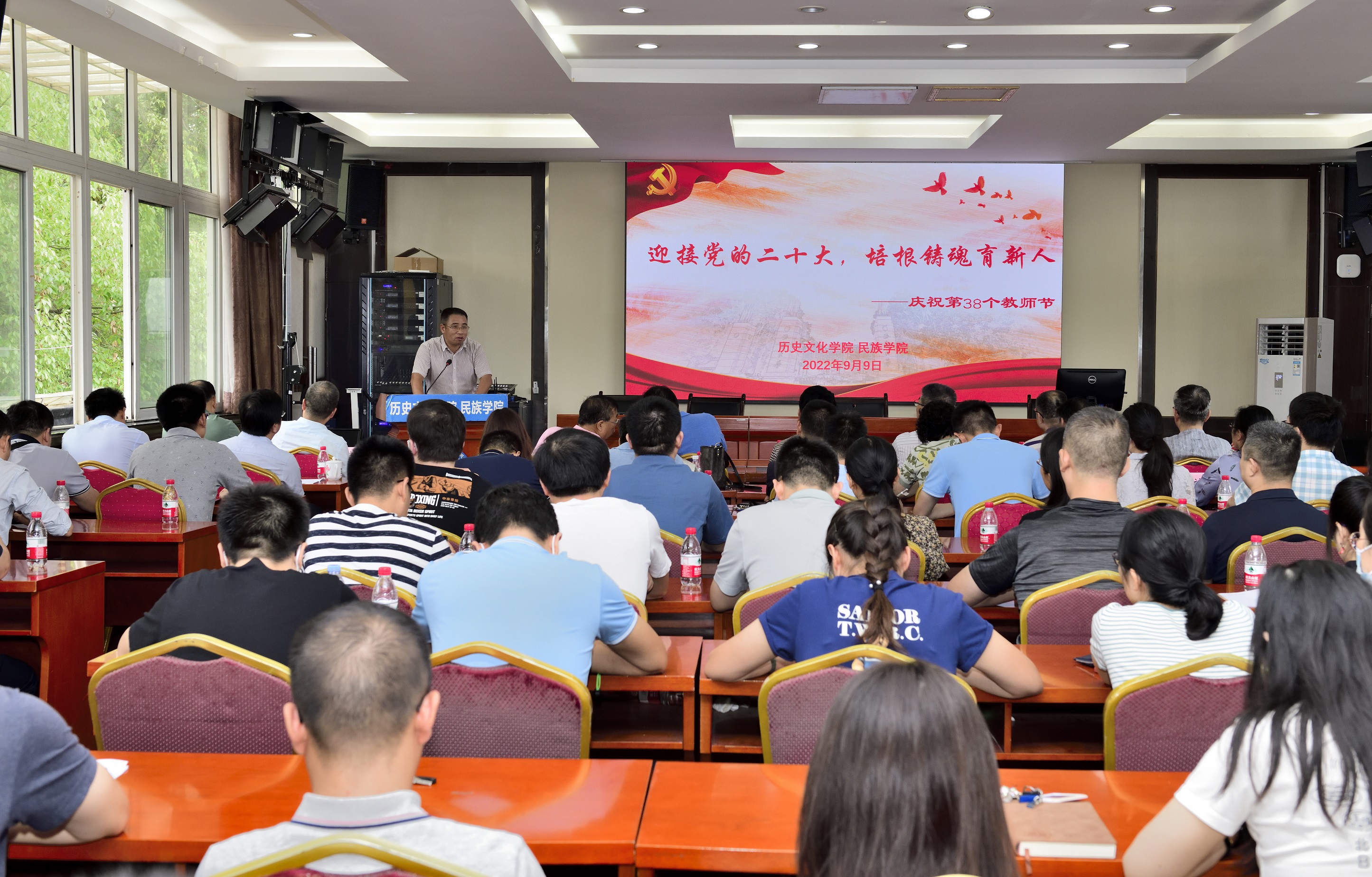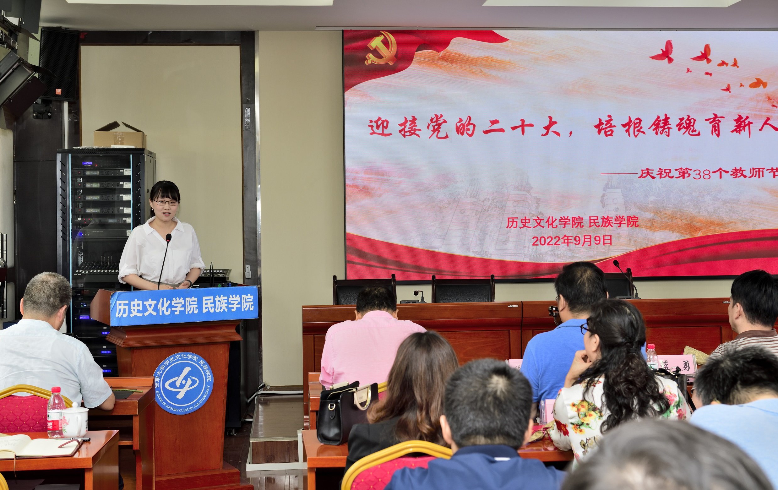 为百年伟业进学修德,行会通能,立超胜志,砥砺深耕,履践致远,含弘光大史学文脉,西南特立,我俦功名不负华夏;守三尺讲台木铎金声,汇天地心,藏桃李情,弦歌不辍,树蕙滋兰,继往开来民族精神,天下学行,烛中薪火长有人间。9月9日,在第38个教师节来临之际,伟德体育教师节庆祝大会在公司七楼报告厅隆重举行。公司党政领导班子,全体教职工参加活动。庆祝仪式由公司党委书记罗庆昌主持。