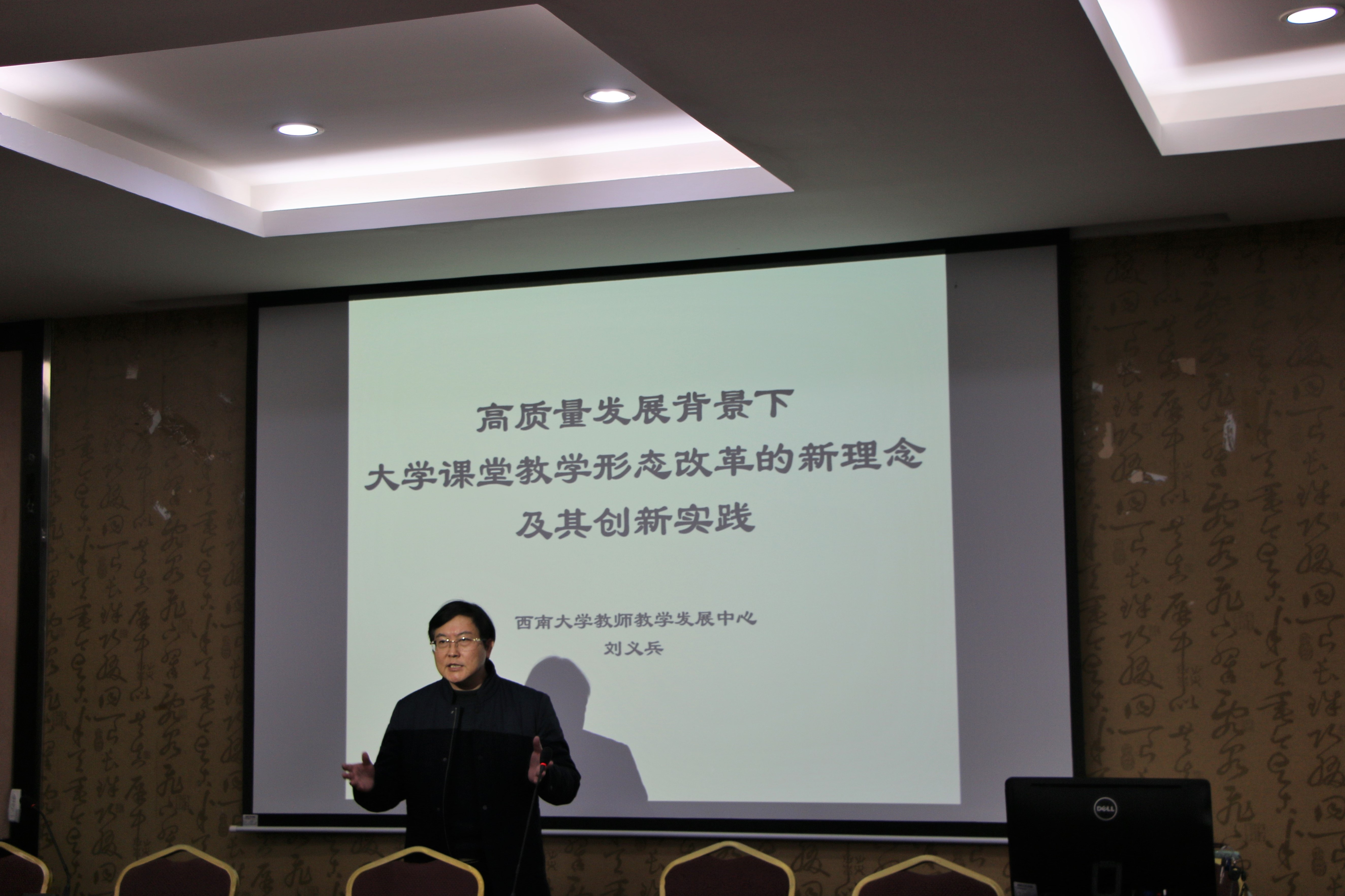 集团教师教学发展中心主任刘义兵教授作为特邀嘉宾,为全院教师带来了题为“高质量发展背景下大学课堂教学形态改革的新理念及其创新实践”的主题报告。他结合自身经历,从国家、社会、文明的高度提出了课堂的意义,并且向在座教师介绍了“在课堂中唤醒员工”的方法,从而树立正确的学习观和知识观。最后他深情地期盼,教师和员工能够在课堂中共同体验知识的幸福与愉悦,更好地认识世界、认识人生。