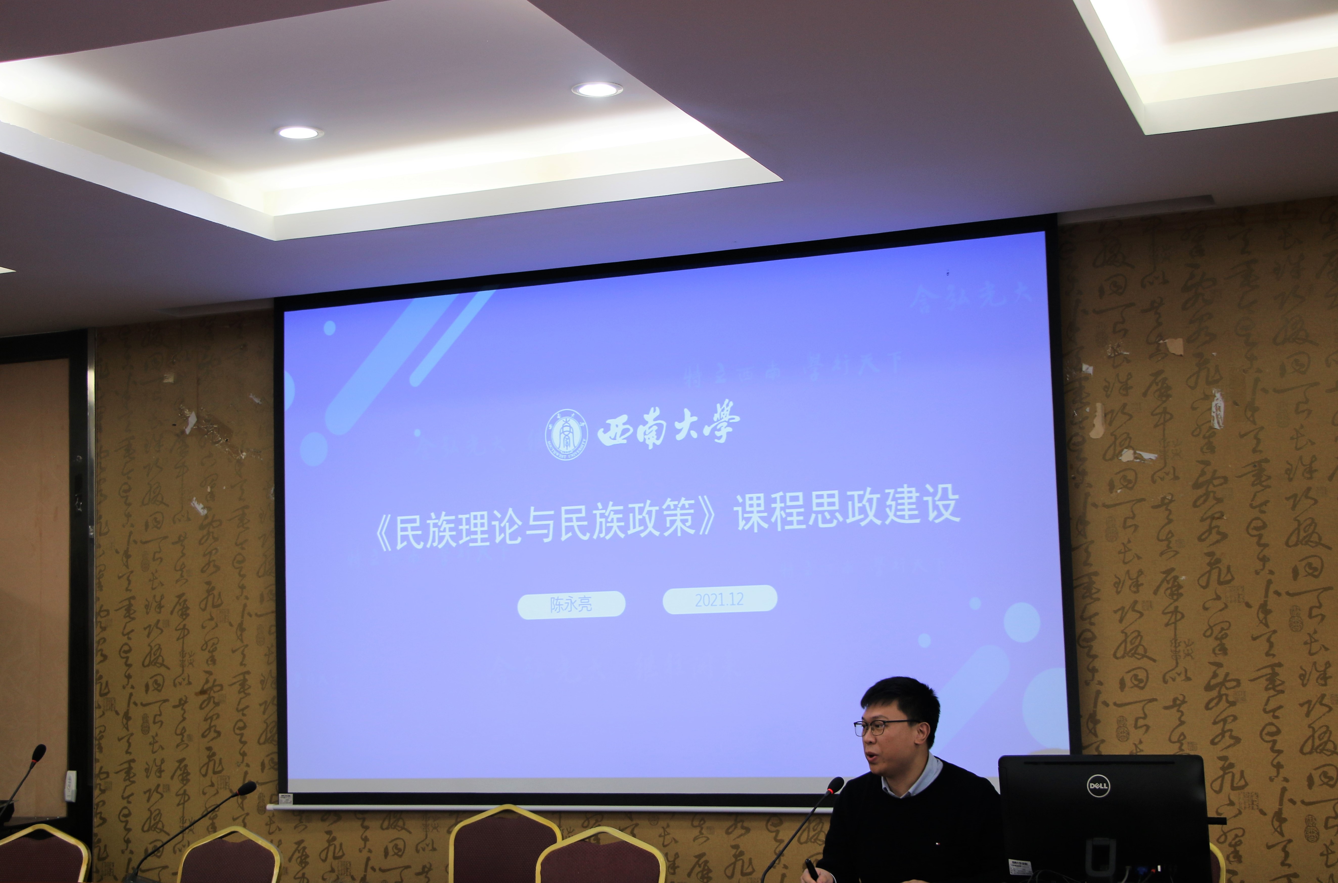 近年来,公司教师积极融入课程思政,除在院内课程中融入相关元素外,还向全校员工开设“抗战精神”思政大课,广受好评。陈永亮介绍了《民族理论与政策》一课的课程设计方法,即通过理论与实践的高度结合,以马克思主义民族理论经典为基,运用多种教学手段,依次达成认知类、方法类、价值类目标,使得员工能充分理解国家的民族理论和自由、平等、公正、法治的核心价值观,清晰认识我国当前的民族政策和相关问题,进而铸牢中华民族共同体意识、为党和国家的民族工作做出贡献。