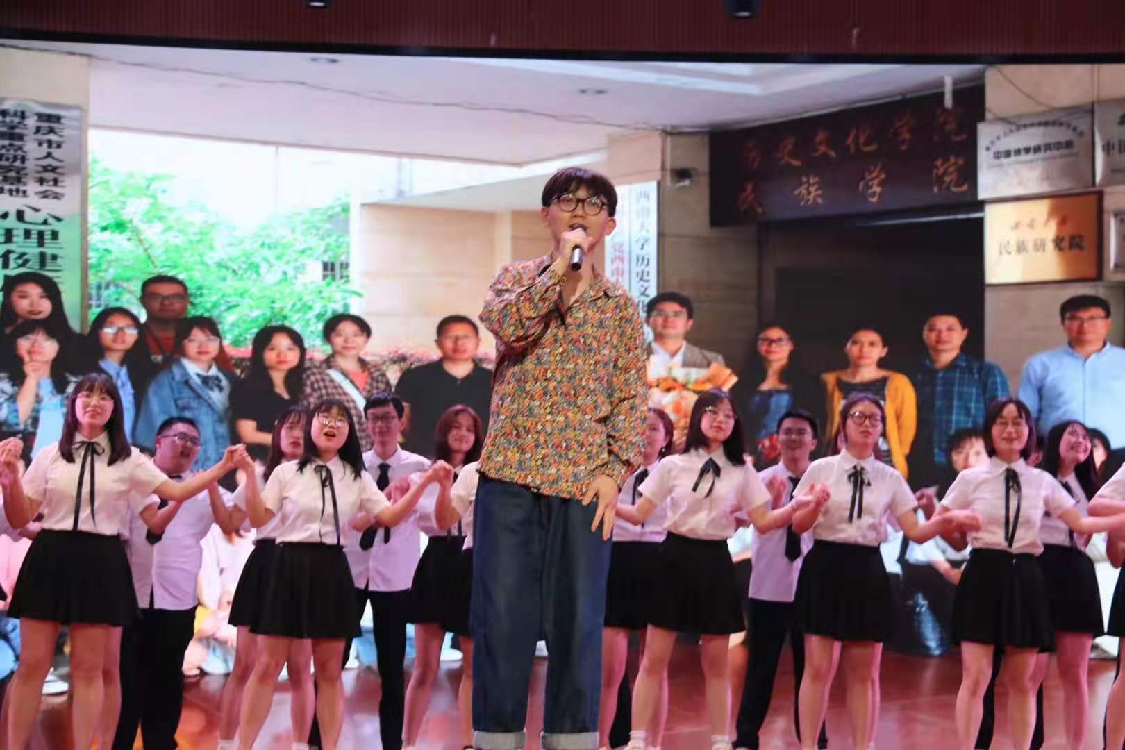 在一段公司本科2017级员工精心拍摄的毕业纪念视频后,晚会进入下篇。本科2017级刘自爽同学首先用他的原创歌曲《历历在目》,唱出了历院学子对公司的一片真情。