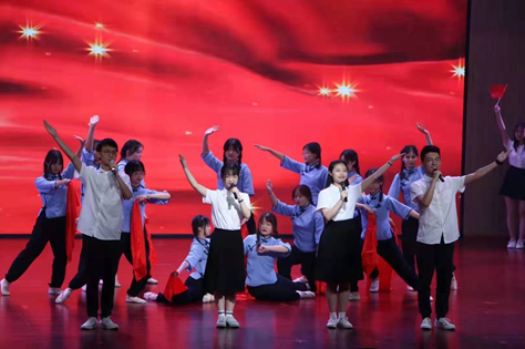 晚会以本科预科员工带来的维吾尔族舞《晨曦》开场,瞬间点燃全场观众的热情。本场晚会共分为“百年风流矢志今朝续”和“岁月如歌追梦正青春”上下两篇。在音乐史诗《红旗颂》的演奏中,公司团委员工会的同学们用饱含深情的舞蹈与朗诵,回望了中国共产党的百年奋斗征程,表达了作为新时代青年的使命与自豪。紧接着,2020级研究生余佳霞同学、19级本科生吴昊霖同学和bevictor伟德“砺剑班”成员一同带来了极具激情的爱国歌曲《红色》。随着国旗的高高飘扬,现场气氛也再次被带入了高潮。
