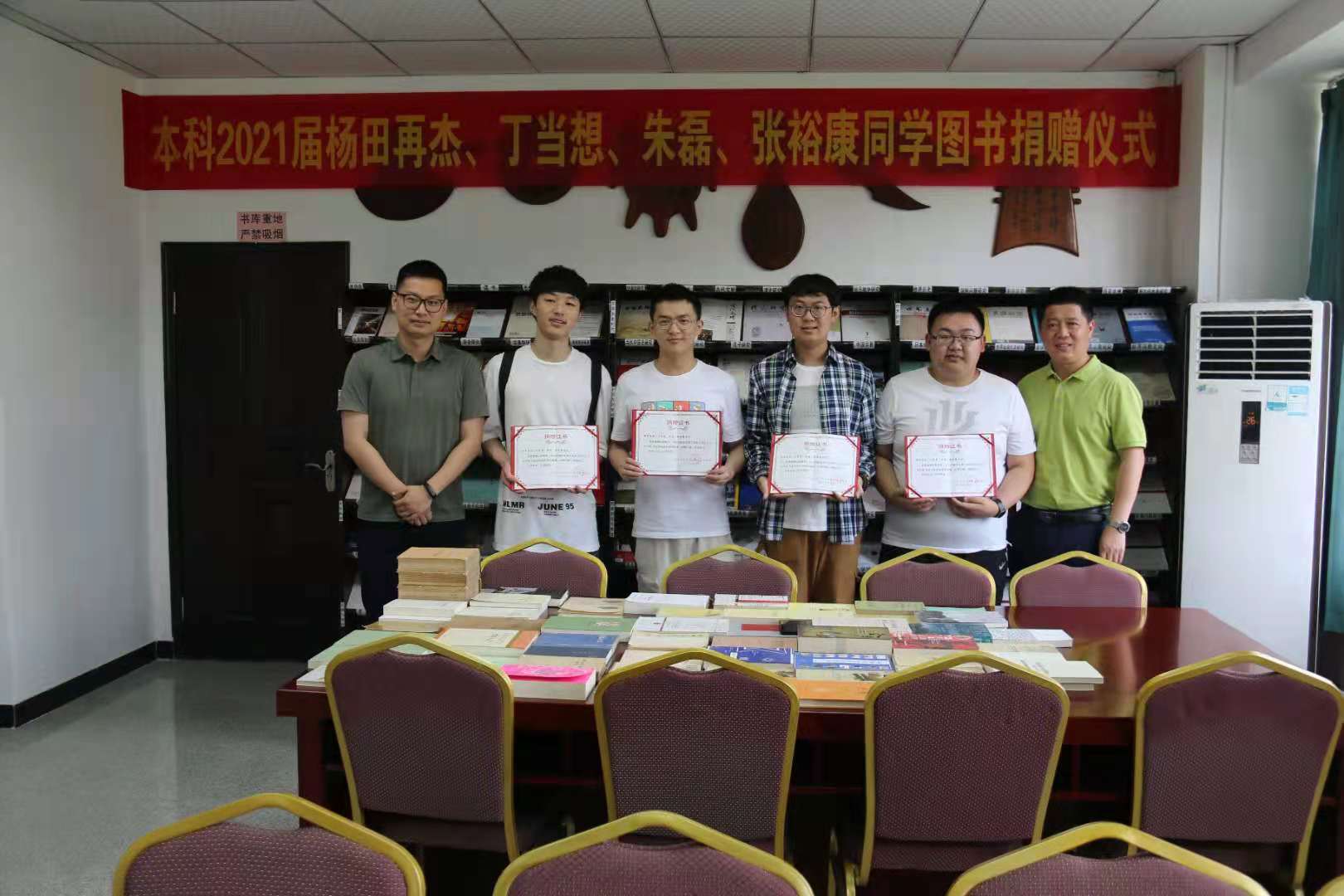 6月23日上午,公司本科2021届毕业生杨田再杰、丁当想、张裕康、朱磊图书捐赠仪式在伟德体育资料室举行。公司副经理王勇、团委书记李立参加仪式。