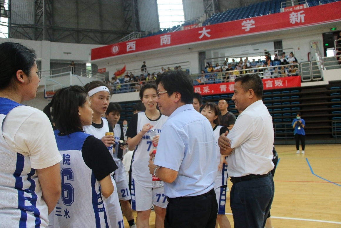 在决赛的进行过程中,公司女篮队员们进攻主动,防守严密,配合默契,早早地确立了领先优势。由公司党委书记罗庆昌和经理邹芙都带队、公司200余名师生组成的啦啦队到场加油助威,呐喊声、欢呼声响彻中心体育馆,让场上的公司队员们倍感鼓舞,一举以29:16的比分,获得比赛胜利。