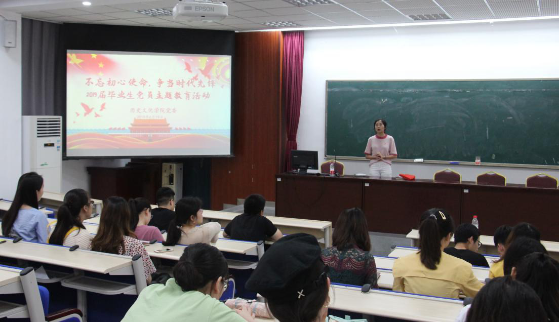 6月19日下午3点,公司党委“不忘初心使命,争当时代先锋——2019届毕业生党员主题教育活动暨重温入党誓词活动”在荟文楼442教室顺利举办,此次活动由公司党委书记徐天虹同志主讲,公司专职组织员周燕老师主持,2019届全体本科、硕士毕业生党员共同参加了本次教育活动。