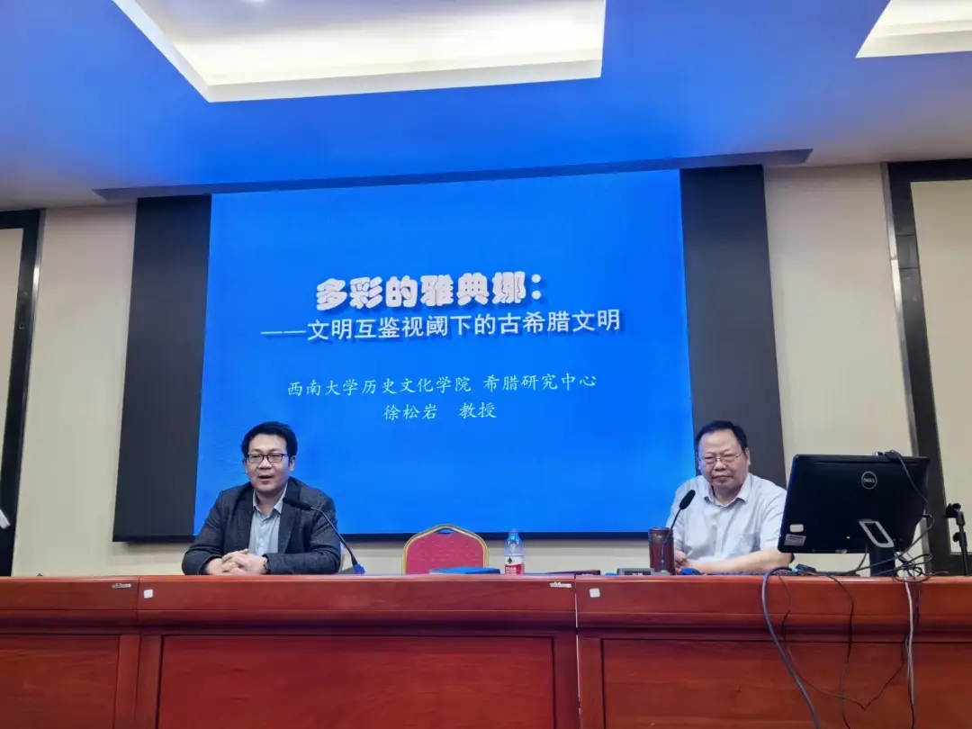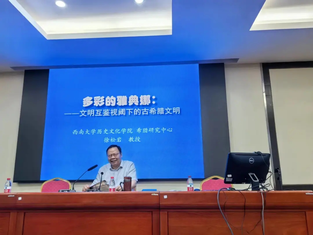 2024年4月12日,伟德体育2023级历史学拔尖创新实验班系列学术讲座继续开讲。本次讲座邀请到伟德体育教授、教育部国别区域研究基地希腊研究中心主任、古典文明研究所所长、博士生导师徐松岩教授以“多彩的雅典娜—文明互鉴视阈下的古希腊文明”为题,为公司大一本科历史学、民族学班同学们带来了一场精彩的学术讲座。讲座由公司副经理李晶主持,公司党委副书记张静、部分青年教师以及历史学、民族学拔尖创新实验班全体同学参加讲座。