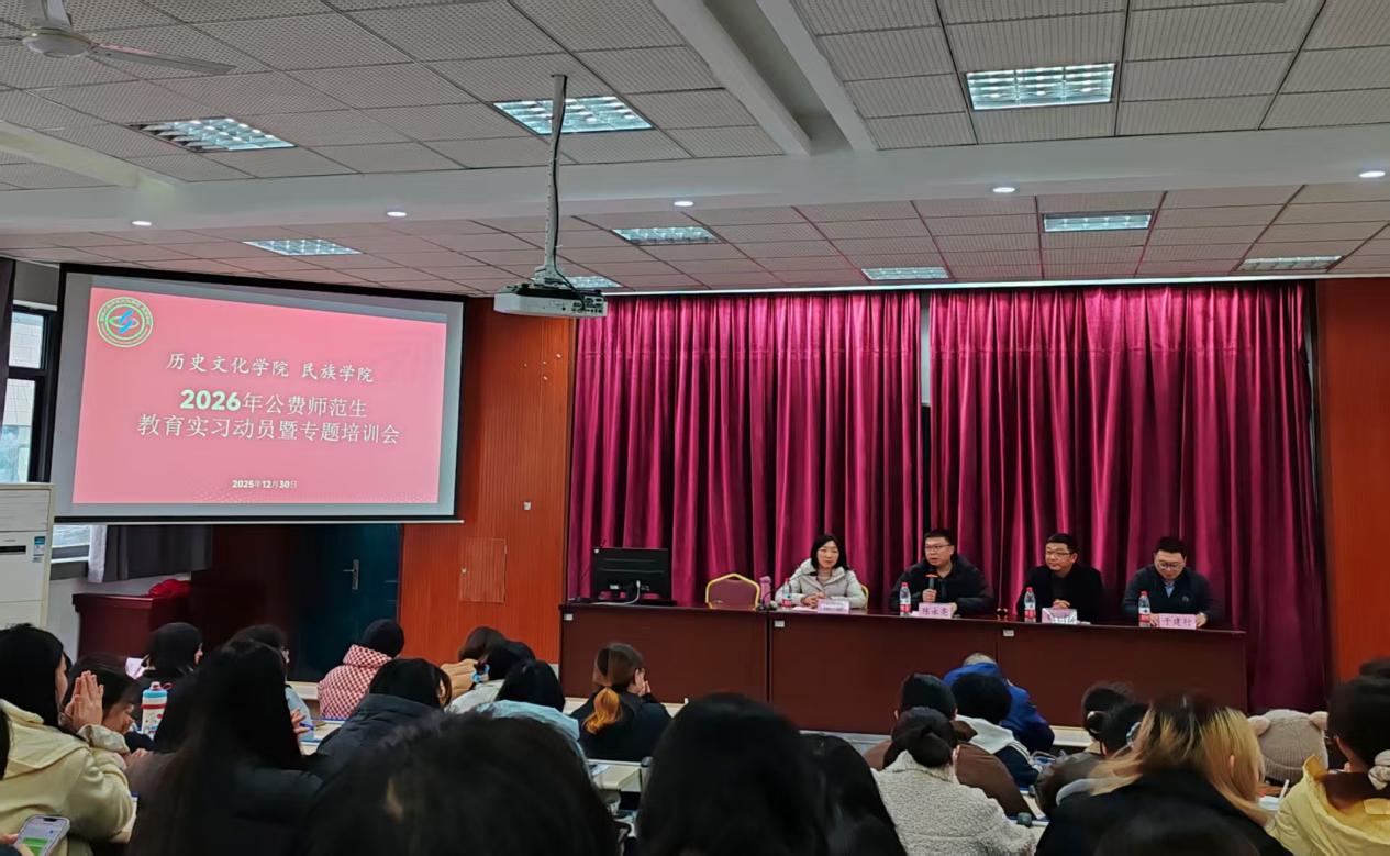 为扎实做好2023级公费师范生教育实习工作,引导员工明确实习任务与要求,顺利完成从员工到准教师的角色转变,伟德体育于2025年12月30日在第九教学楼505教室召开2026年公费师范生教育实习动员暨专题培训会。教师教育公司副经理杨挺、师范生实践教学中心主任于建行、伟德体育副经理陈永亮、副书记张静、教育实习指导教师、教育实习专题培训校外专家、2023级辅导员及全体公费师范生共同参会。
