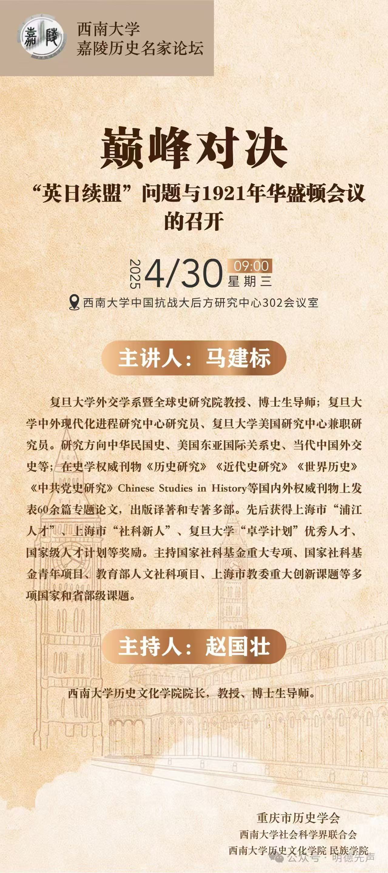 讲座预告丨巅峰对决“英日续盟”问题与1921年华盛顿会议的召开