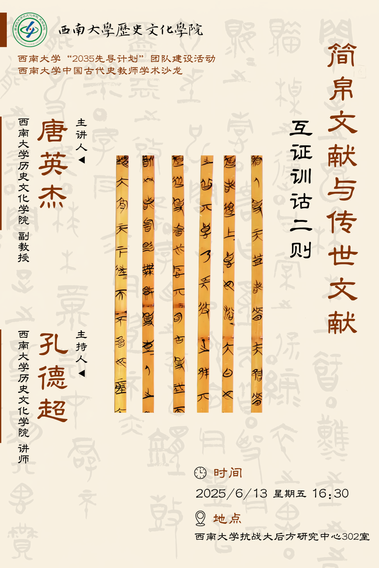 讲座预告丨唐英杰:简帛文献与传世文献互证训诂二则
